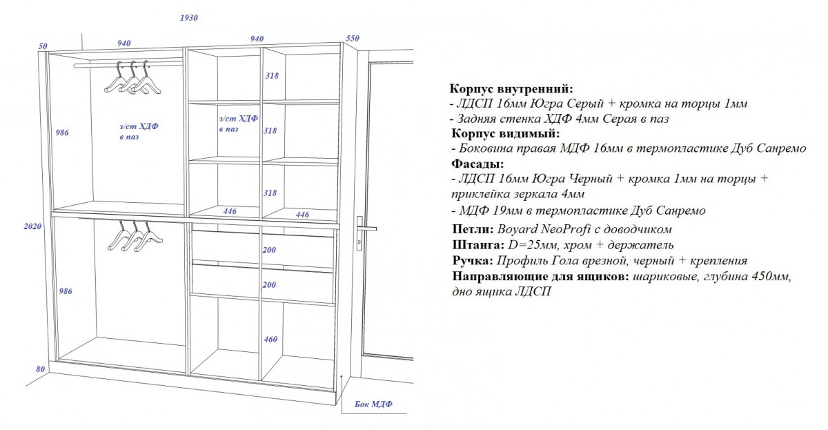 Фасады: МДФ 19 мм, Дуб Санремо.